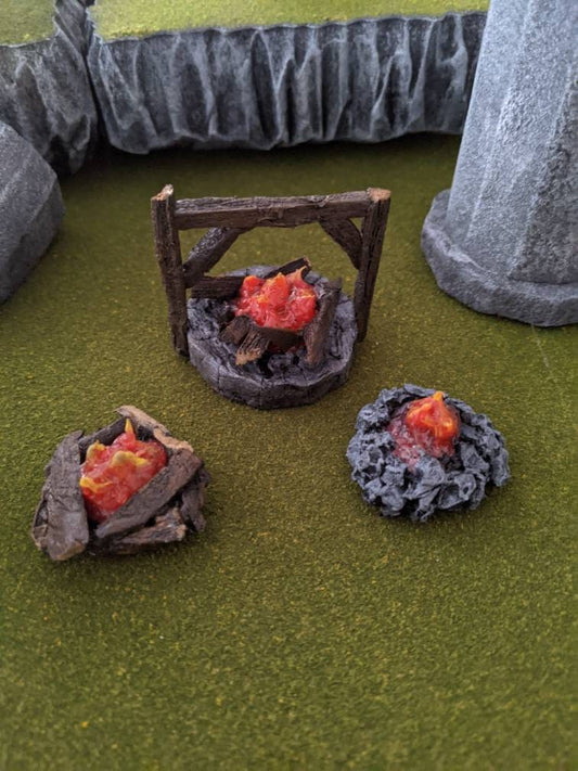 LED Flickering Campfire set of 3 for Dungeons & Dragons, Warhammer, Age of Sigmar and other Tabletop RPG terrain